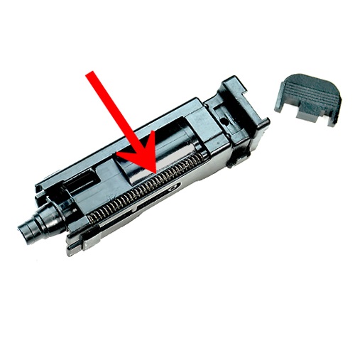 ショートストローク化すると、シリンダーの後退不足による給弾不良が起きるのでシリンダーSPも太く短い物に交換します。