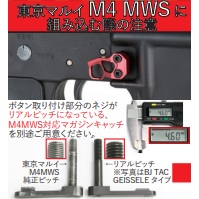 ※上記マルイ製に取り付ける場合、ボタン取り付け部分にリアルピッチネジを採用したマガジンキャッチが必要となります。