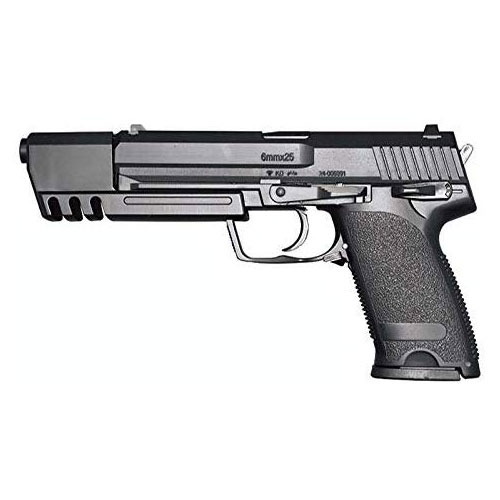 特徴としては銃身前部にウェイトが射撃時の跳ね上がり抑制の為に装備されています。その他カスタマイズ部分はトリガーがMatchトリガーであったりバレルの長さが変更されていたり競技用にカスタムされています。有名な映画の主人公が2丁拳銃スタイルで出ています。