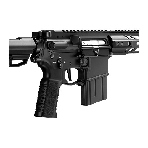 剛性を確保し徹底的な肉抜きによる軽量化、各種オプションパーツに対応する拡張性、利き腕を選ばない操作性、構え方の変化に対応する柔軟性など、あらゆる状況に対応できるポテンシャルを備えた万能型タクティカルライフルとなっています。
