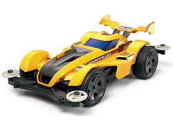 【 MSシャーシ 】 優れた剛性を実現する3分割式「MSシャー シ」はモーターやバッテリーといった重いパーツをシャーシ中央に配置した「ミドシップ(MS)レイアウト」とミ ニ四駆伝統の4WD(四輪駆動)機構で、高速走行時にも優れた安定性を発揮します。