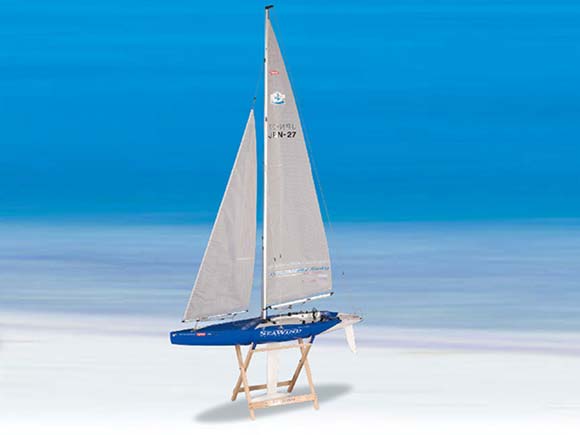 京商のハイエンドヨットにふさわしく、JFクラス適合のビッグサイズで製品化を果たした本格レーシングヨット “シーウインド”。初号機が登場して20年以上も変らぬ売れ行きを保っている、驚異のロングセラーモデルです。大アスペクトレシオのロングスパンキール、プッシュ&プル方式で逃げのないラダーなど、すべてが戦闘力ある走りのためのスペック。短時間で最高速に達する加速性能や、弱風でも安定して帆走できる高効率な走りは、ベテランをもうならせる性能です。船体はABS製一体成型でカラーリングを施した工場完成品。しかもバンド管理不要の2.4GHzプロポを搭載済みのレディセット。シーウインドならではのハイエンドの性能を、すぐに楽しむことが可能です。しかもお求めいただきやすい価格も実現し、気軽さも身につけました。また、マスト、キール、ラダーは工具不要で分解可能。収納時や携行時にコンパクトにまとめられるので、レジャーのお伴にも邪魔になりません。ドライブ先でセーリングを楽しむといったプレイスタイルも、無理なく可能です。加えてセールサーボ、ラダーサーボ共に防水仕様。様々な状況下でも高い信頼性で応えます。トップレベルの性能を誰もが楽しめる“シーウインド レディセット”で、胸躍る風との対話をご堪能ください。