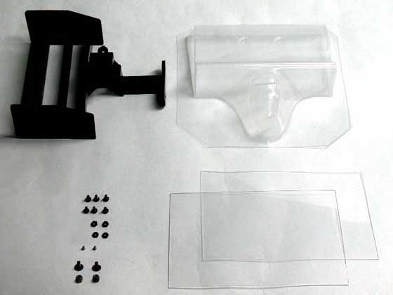 樹脂パーツのセンターマウントでクラッシュ時の耐久性アップ。ヘルメットシールド、バイザーも付属(ステッカーは付属しません。タミヤアフターサービスでお求め下さい。)