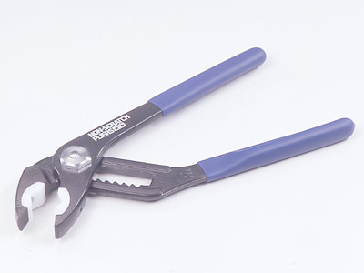 RCカー用のエンジンのフライホイールの脱着に便利なプライヤーです。つかみ部分に特殊樹脂を装着して、アルマイト処理されたフライホイールでも傷つけにくいのが特徴です。フライホイールに傷がつかないので真円が保たれ、回転バランスが崩れることなくエンジンの性能を確実に引き出します。つかみ部分の最大口開き幅は46mm、8段階の調整ができ、バネ機構を内蔵して高い作業性を実現。グリップ部分は滑りにくい特殊樹脂コーティングを施しました。