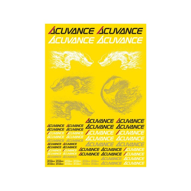サイズの異なる6種類のACUVANCEロゴに加え、XARVISのスリーブパッケージデザインを手がけた絵師・白道氏書き下ろしの龍をレイアウトしました。