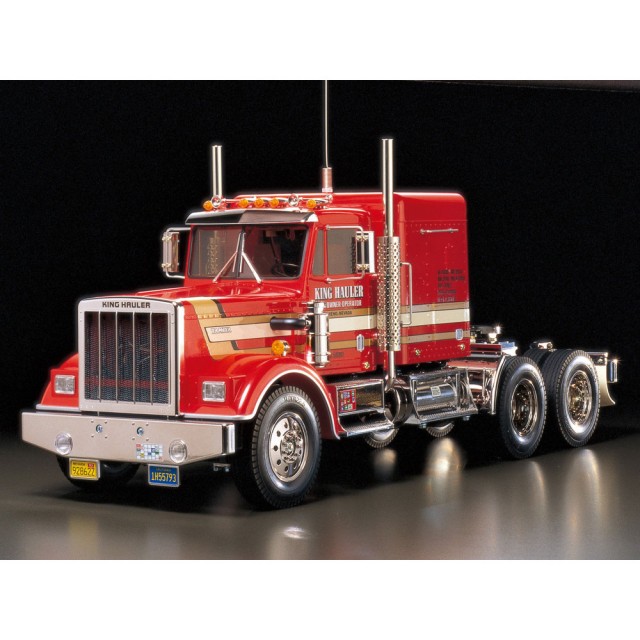 ハイウエイの王者とも言われるボンネットタイプのトレーラーヘッドを再現した電動ラジオコントロールモデルの組み立てキットです。サイズは世界の模型界でも最大級の1/14スケール。フロントにモーターを搭載してプロペラシャフトで後輪2軸を駆動する実車同様のパワートレインを採用し、3速トランスミッションを装備して走行中にギヤチェンジも楽しめます。精密金型によるリアルなボディに加えて、金属製ラダーフレームや前後のサスペンションに金属製リーフスプリングを使用するなど、高品質な仕上がりは、組み上げる楽しさもたっぷりです。もちろん別売のトレーラーも連結でき、その迫力をいっそう高めることもできます。