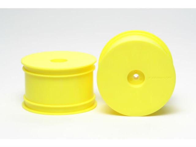 ドロの付着などが少ないフラットディッシュデザインに加えて、鮮やかな蛍光イエローカラーがホイールの視認性を高めます。DN-01シャーシをはじめ、DB01シャーシ各車、TRF201、TRF502X、TRF511、TRF501Xにも使えます。