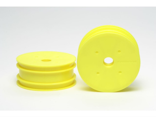 ドロの付着などが少ないフラットディッシュデザインに加えて、鮮やかな蛍光イエローカラーがホイールの視認性を高めます。DN-01シャーシをはじめ、TRF201にも使えます。