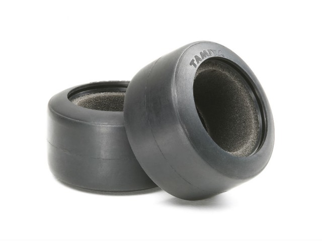 キットに標準装備されているタイヤに比べて柔らかいコンパウンドを使用したラバータイヤです。リヤタイヤのグリップ不足を感じた時に使用するのはもちろん、路面温度が低い場合はOP.1198 F104ラバータイヤ(フロント・ハード)との組合せがお勧め。前後のグリップバランスを適正化して、走行させやすくなります。