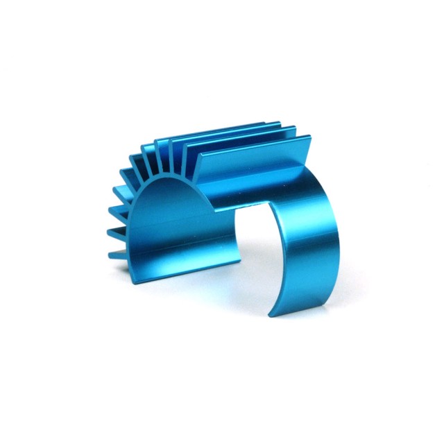 11枚のフィンがモーターの放熱効果を高め、熱ダレやパワーダウンを防止します。TT-01シャーシに装着した際、ドライブシャフトとの干渉を防ぐデザインとしました。