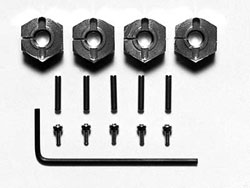 ※6mm厚アルミホイールハブ×4、キャップスクリュー×5、ステンレスシャフト×5などをセット