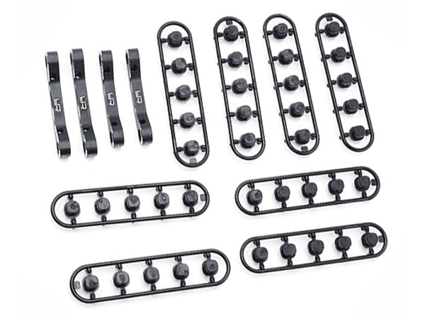 付属のサスペンションインサートパーツを使用してサスペンションジオメトリを自由に細かく調整可能となります。 サスペンションピンの高さもインサートパーツで調整することができるため、マウントの下にある小さなシムを使用する必要がなくなります。
