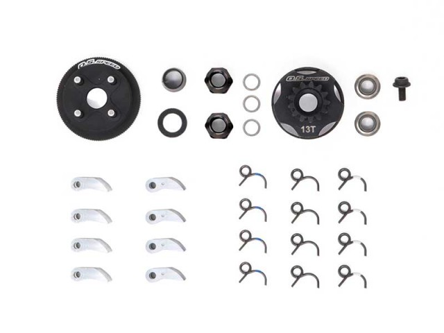 1/8オフロードカー用に開発された4ピースクラッチで、2種類のクラッチシューとフライホイルナット、3種類のクラッチスプリングの組み合わせにより、コースレイアウトや路面状況に応じて細かな調整が可能です。 従来の3ピースクラッチと比べクラッチミートがスムーズで燃費面においてもアドバンテージを発揮します。