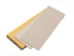 商品は、ベースとなる厚手のベニア板台の両面にセットに入っている荒目#120と中目#240のサンドペーパー(裏面に両面テープ貼付済)を貼ることで荒削りから仕上げまでこれ1本で完結するサンディングブロックが出来上がる様になっています。