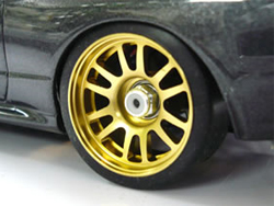 - アルミ6本スポークホイール(ワイド)(オフセット1)(ゴールド)(京商 MINI-Z用) [WAG-110]