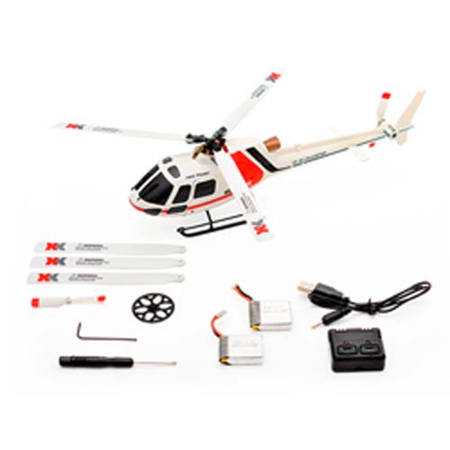○機体 ○飛行用充電式リポバッテリー×2 ○スペアローターブレード×3 ○スペアテールブレード×1 ○スペアスパーギア×1 ○USB充電器/ケーブル ○工具 ○日本語取扱説明書