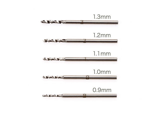 ダンパーオイルの変更とともに、オイルダンパーのセッティングに欠かせないピストンの穴開け加工用ドリル刃セットです。サイズは0.9、1.0、1.1、1.2、1.3φの5種類。取り付け軸径が太いのでので、確実に取り付けられ芯ブレしにくいのも特長です。ITEM:74086モデリングドリルチャックまたはITEM:74050精密ピンバイスDに取り付けて使用します。