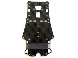 高剛性グラファイト材を使用したメインシャシー。バッテリー部の両サイドをカットすることでナローシャシーにもできます。