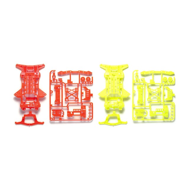 【 基本スペック 】 蛍光オレンジと蛍光イエローの2色のシャーシ、Aパーツ、リヤステーをセット