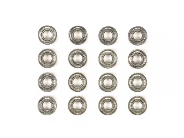 ボールベアリングの装備はチューンナップの第1歩。駆動ロスを減らして走行時間をのばし、軸受け部分の耐久性も高めます。