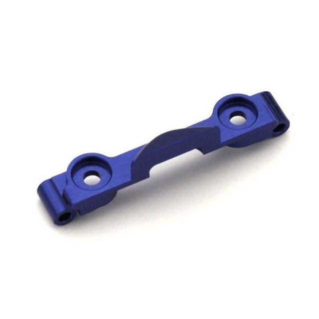 MR-03EVO専用のアルミ製アッパーマウント。アッパーアームをアルミ削り出しパーツで保持することで剛性が向上、またフロントよりの重量配分にしたいときにも有効。ナロー幅用。