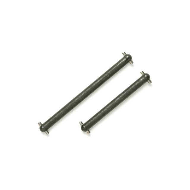 強度の高いスチール製の前後プロペラシャフトです。レーススタート時など、エンジンを空ぶかしした状態で接地させても、ピンの脱落を防ぎ走りの信頼性を高めます。また、シャフトの両端部分は回転ブレを防ぐ形状を採用しました。