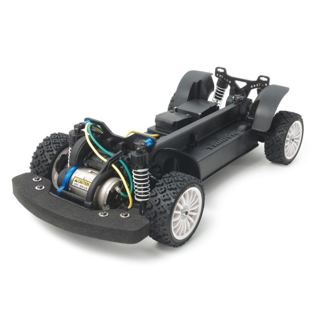 【 基本スペック 】 ●シャーシ長384mm、全幅185mm ●ホイールベース 257mm ●フレーム=モノコックタイプ ●駆動方式=ベルトドライブ4WD ●デフギヤ=前後ともギヤデフ ●ステアリング=3分割タイロッド式 ●サスペンション=4輪ダブルウィッシュボーン ●ダンパー=CVAオイルダンパーミニII ●ギヤ比=8.04:1(キット標準の68Tスパー、22Tピニオン時) ●駆動系はフルベアリング ●540タイプモーター付き ●スピードコントローラー=ESC仕様(別売)