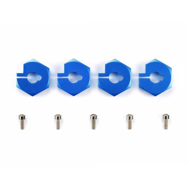 【 基本スペック 】 ブルーアルマイト加工されたアルミ製ホイールハブ4個と1.6×4mmキャップスクリュー5本をセット