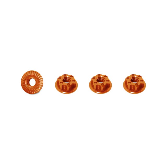 - T-WORK'S 7075アルミ製4mm薄型フランジナット オレンジ(セレート付き/4個入) [TA-126O]]