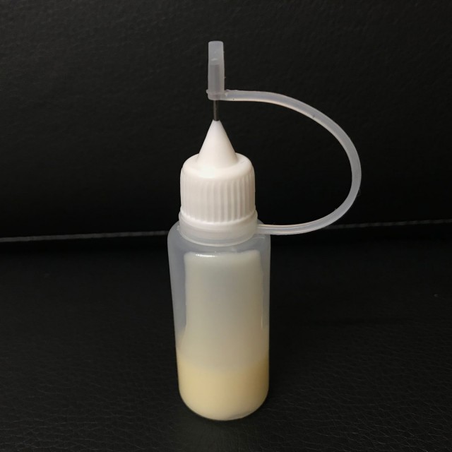 ホームセンターなどで、売られている、CRC556等で元液1に対しCRC556を3、