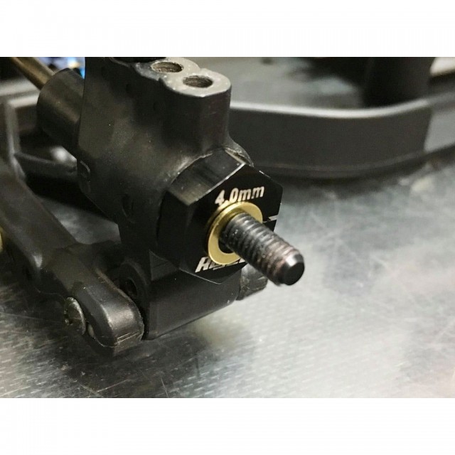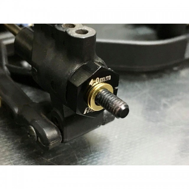 ■HTブラスM3スペーサーも取り付ける場所によって接地感の向上が見込めます。例えば、ロアサスアームのホイールベース調整用やナックルのアッパーアーム取り付け部など用途は様々です。