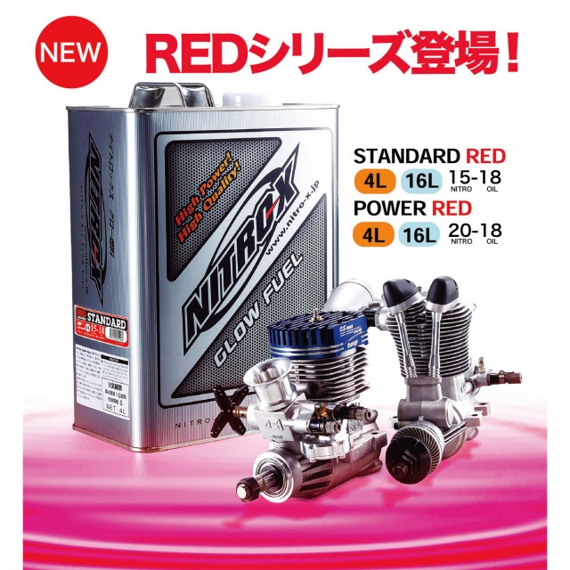 REDシリーズは視認性に優れた赤色着色を採用。フライト時のタンク状況が把握しやすくなりました。タンクが露出しているフレームタイプのヘリに最適です。