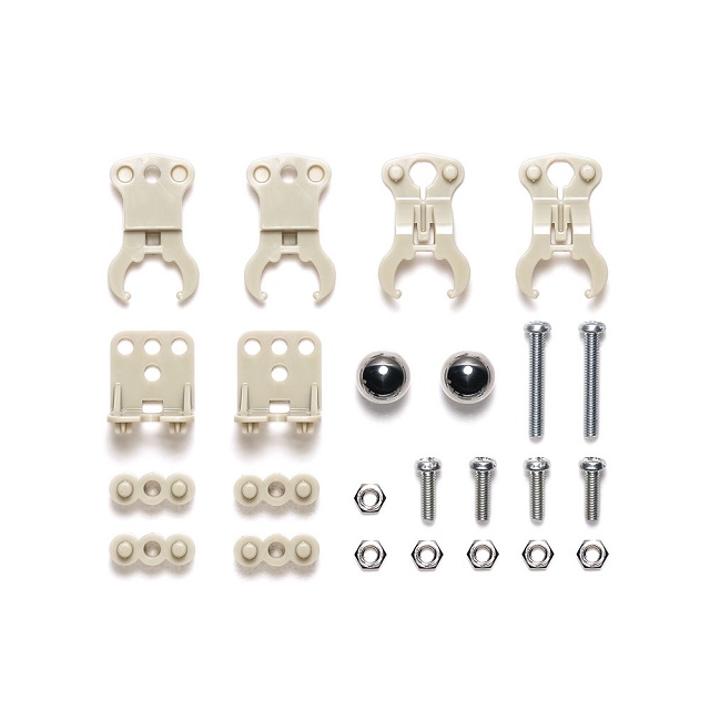 直径10.3mmの金属ボール2個に加えて、L字パーツや高さ調整用5mmスペーサー、取り付け用ビス・ナットもセット