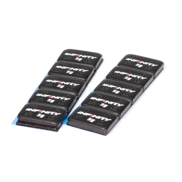 Black colour original racing weight with Infinity logo. Supplied with double sided tape pre-installed, they are ready to use immediately after trimming. Each piece is compact in size and features smooth edges, perfect for adding additional weight into any RC car. 12x19x3mm (thickness does not include double-sided tape) 5g x 10pcs