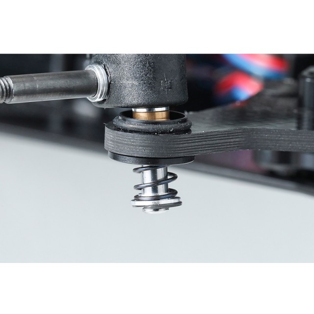 商品は高精度アルミ削り出しとなっているので、セッティングアイテムとしても活用できます。HQフロントスプリングリテーナーは、TB-AK12のほかにインチサイズキングピン(3.17mm)を使用するDDシャシーにも使用可能です。