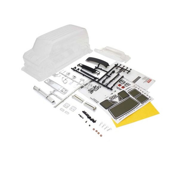 ボディのスケール感をひときわ際立たせるメッキ仕上げによるボディアクセサリーパーツ、転倒した際にルーフを保護するプロテクターパーツ、ポリカ製のリアスポイラー、レディセットに使用しているデカールとマスキングシート、ボディを好みにカスタムできるデコレーションデカールが付属します。