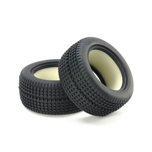 マイクロピン形状が特徴的な、ソフトコンパウンドを使用したハイグリップタイヤです。硬く締まったオフロードやカーペット路面で威力を発揮。ソフトコンパウンドの採用とインナースポンジを内蔵して走る場所を選びません。※タイヤ表面が白くなることがありますが、性能に影響はありません。