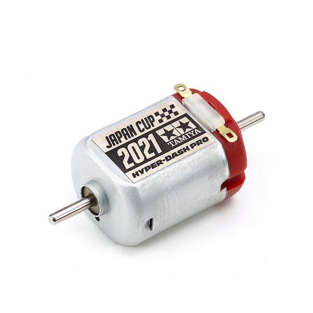 ミニ四駆PRO用の上級者向け高性能両軸モーター、ハイパーダッシュモーターPROの特別記念モデルです。銀カーボンブラシを採用して電気効率と耐久性をバランスさせました。台紙とモーターラベルにJAPAN CUP 2021の文字を大きくレイアウト。モーターラベルはゴールド&ブラック、エンドベルはレッドカラー。レース用としてはもちろん、記念品としても手に入れておきたいモーターです。ミニ四駆PRO専用の両軸モーター。※8Tピニオンギヤは別売。