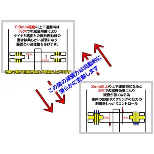 減衰が強くなる為車体の制御やスプリングの反力の制御をしっかりコントロール
