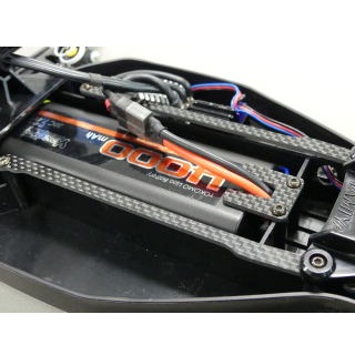 本製品は、2ミリ厚のカーボン板から製作されています。剛性の低い樹脂製のシャーシの剛性をアップさせます。左右別体の構造にして