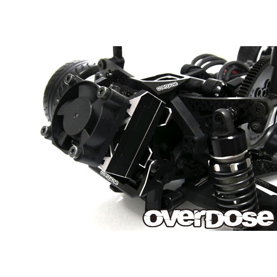 OD サポートドライバーJUNTA のプロデュースによるアルミリヤESC マウントです。ESC をリヤオーバーハング部分に移設することで車両重量を増やすことなくリヤ寄りの重量バランスにすることが可能になります。これによりトラクション性能が大幅に向上、圧倒的な車速UP に繋がります。