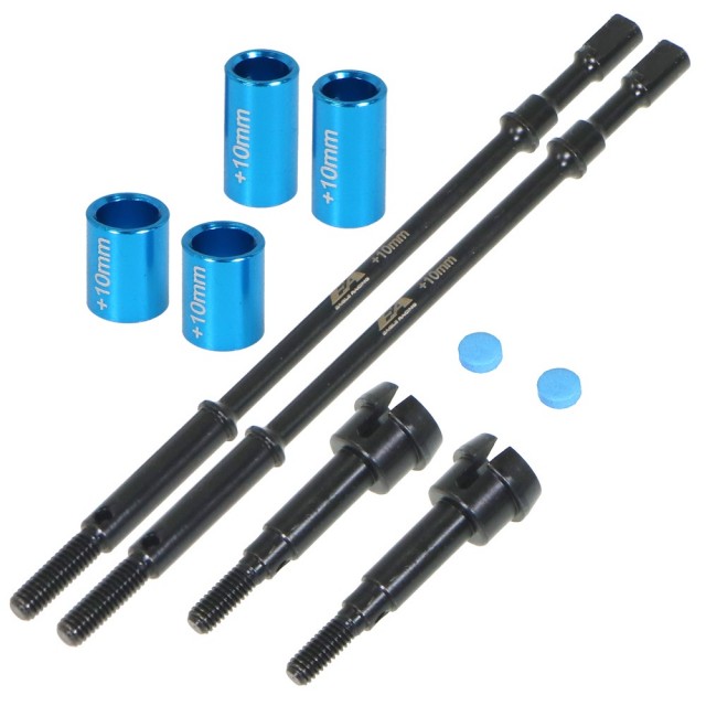 RCカーのドレスアップに欠かせないワイドトレッドですが、本品は前輪後輪を左右それぞれ+10mmワイドにすることができ、迫力のあるセットアップが可能です。