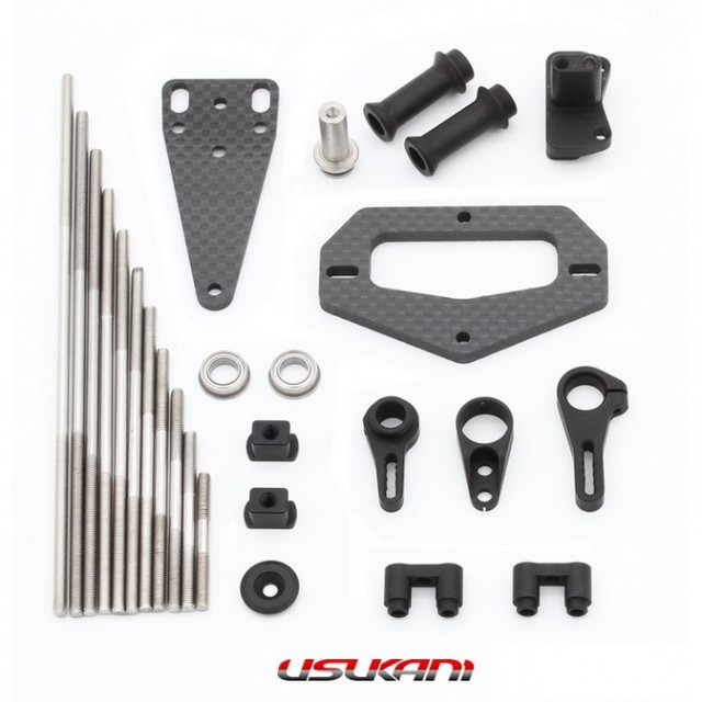 どの位置でも設定可能なように様々な長さのステアリングタイロッドが付属。