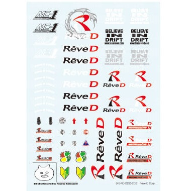 ■収録内容:Rêve D ロゴ、BELIEVE IN DRIFTロゴ、MC-1ロゴ、ABSOLUTE1ロゴ、初心者マーク、四つ葉マーク、タイヤステッカー、ボンネットピン、フラットタイプ ボンネットピン、消火器マーク、キルスイッチマーク、牽引フック指示マーク、給油口、実車D1車両用Rêve D ロゴ(1/10サイズ)、ゆめっち(ボーナスステッカー)