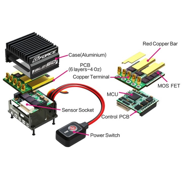 基本性能の高さと扱いやすさは先代モデル譲り。BEC出力を3Aへと大幅UPし、多くのシャーシでよりパワフルで豪快な走りを楽しめます。ブラックケーブルを採用し車載時のルックスアップにも!