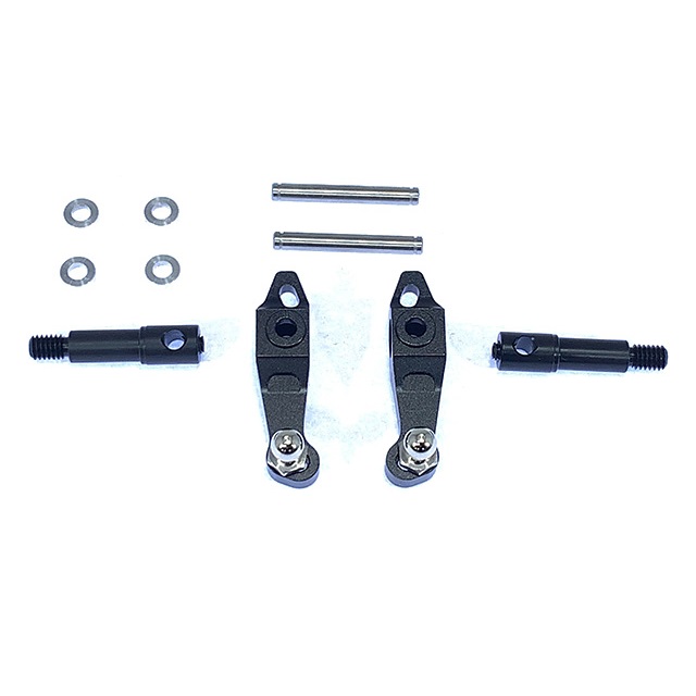アクスルシャフトは焼き入れスチール製。ステンレスキングピンシャフト、5mm ピロボール、スペーサー付属。