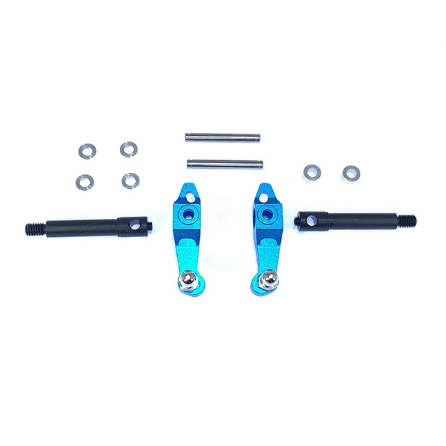 アクスルシャフトは焼き入れスチール製。ステンレスキングピンシャフト、5mm ピロボール付属。