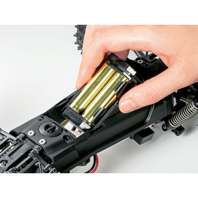 走行用電源は単3形アルカリ電池4本または、タミヤLF1100-6.6Vレーシングパック(Mサイズ)も使用可能。