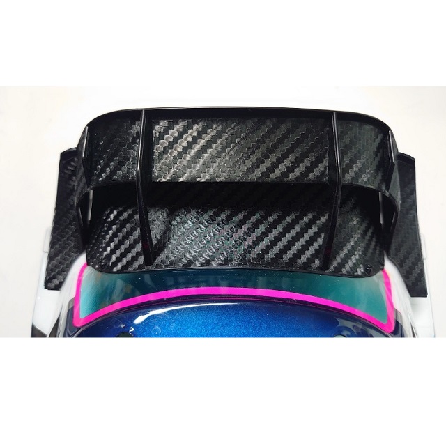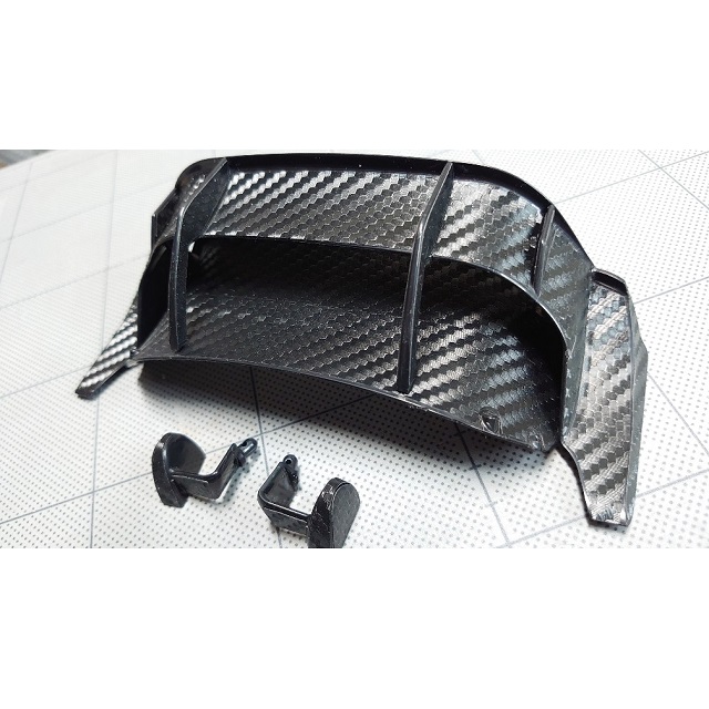 タミヤ ヤリスWRC(品番SP1608)用のリヤウィングとミラーに貼り付けるカーボンデカールです。実車さながらのルックスを実現できます!