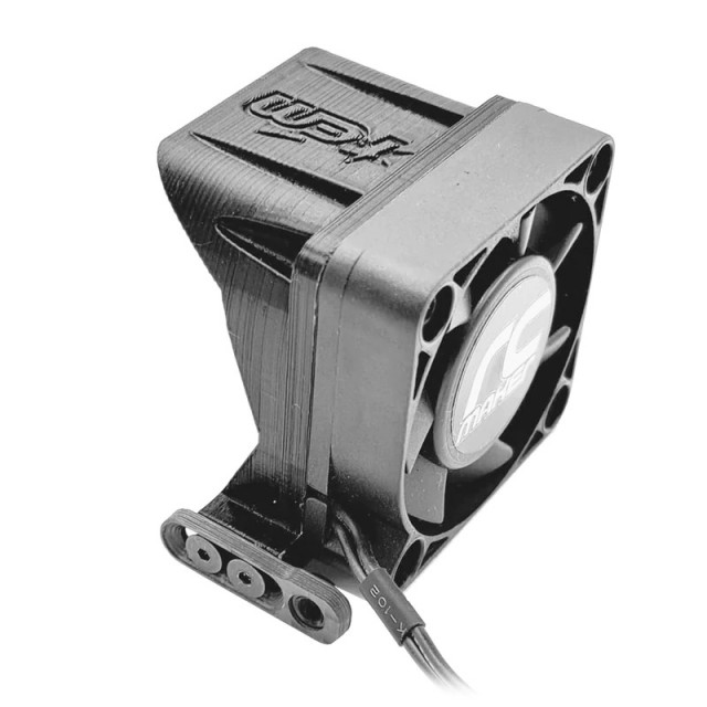 This revolutionary directly mounting fan shroud screws straight to the spare hole in the motor-mount on the XRAY X4 Touring Car. With our fan shroud, there is no need to purchase any after market fan mounts, or tape anything. The fan shroud screws directly to the motor-mount and floats the fan and shroud assembly off the chassis for uninterrupted flex.